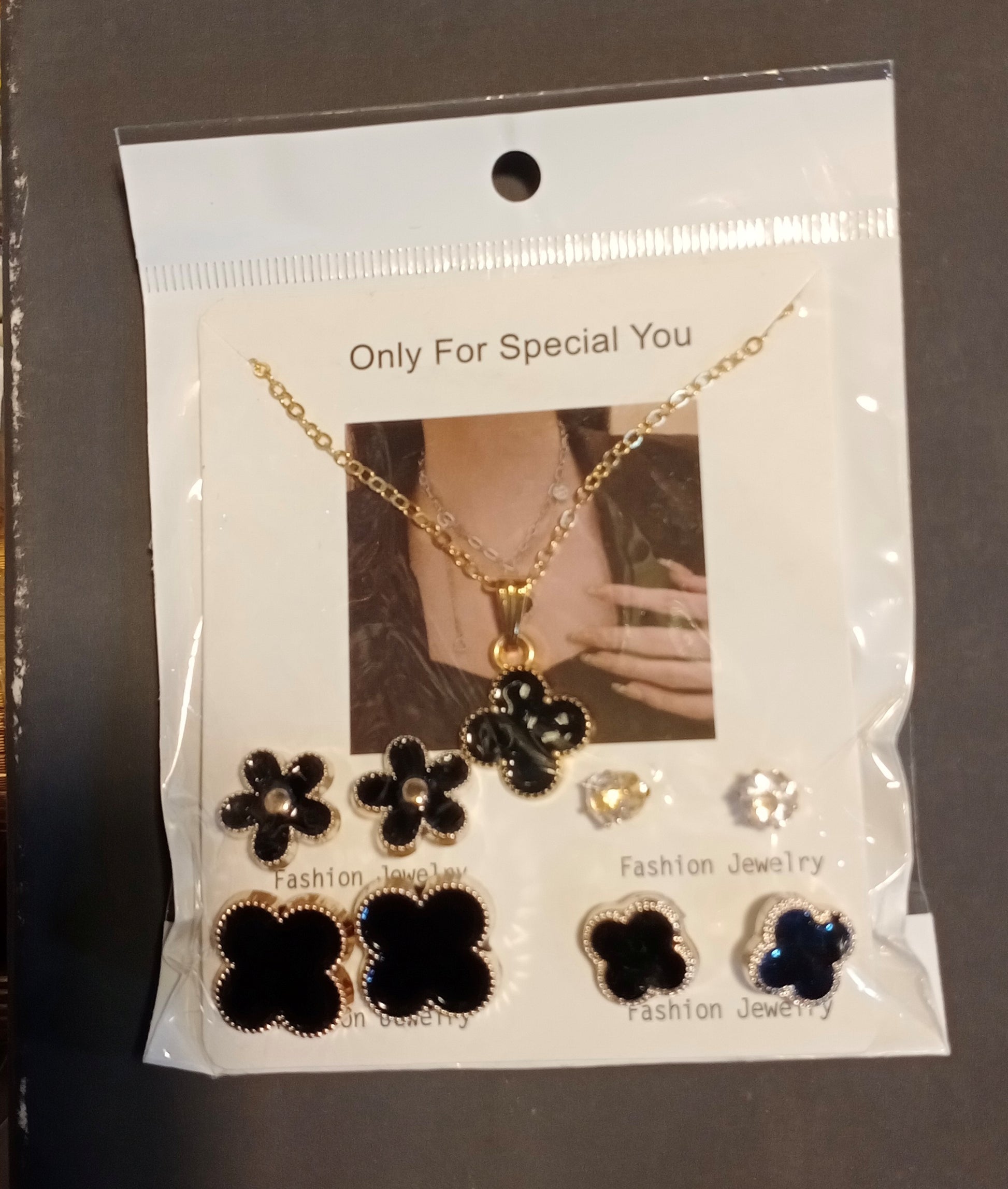 Black flower combooo set Stainless steel jewelry set necklace woth 4 earrings set